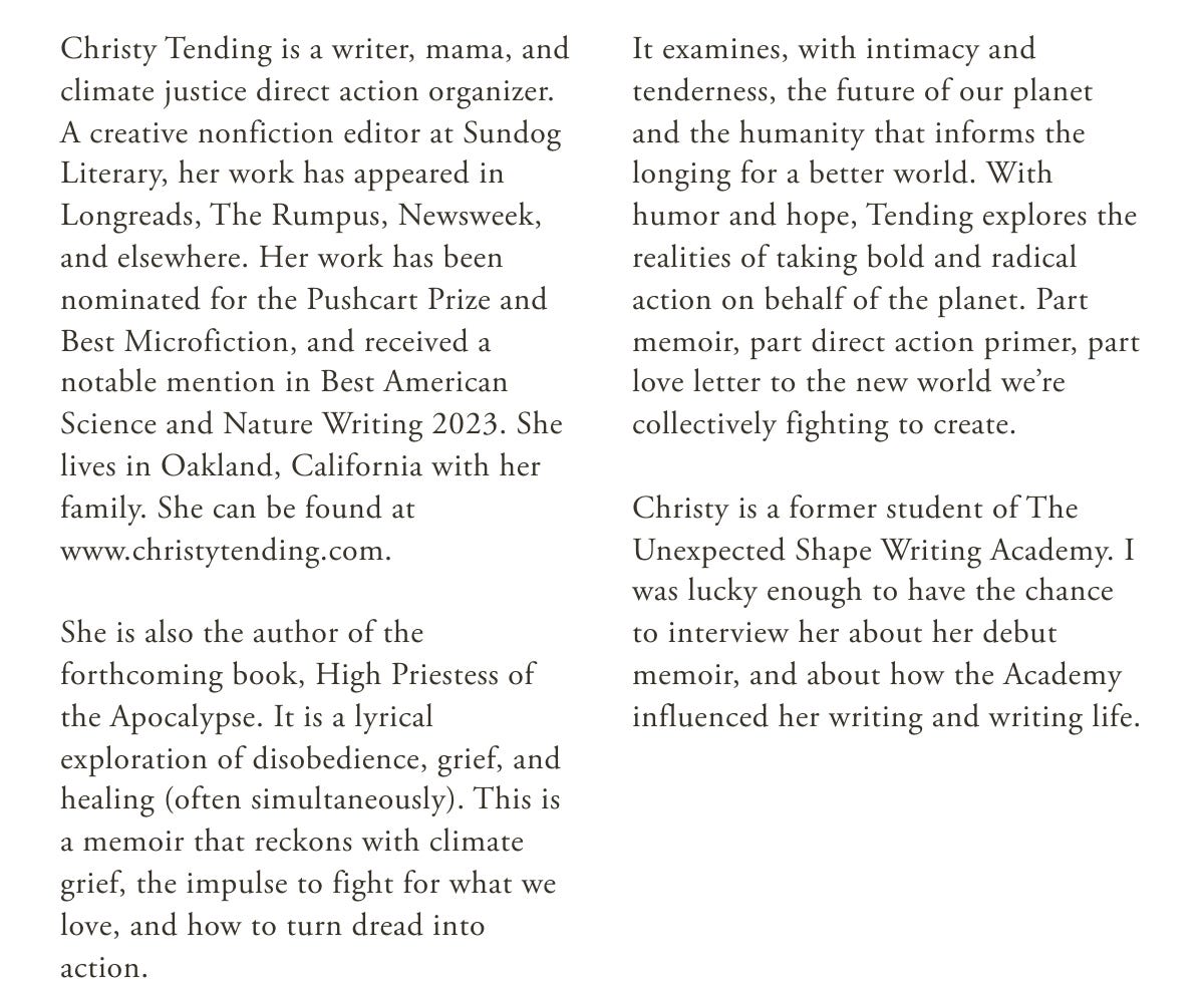 Christy Tending talks in the above interview about the impact The Unexpected Shape Writing Academy had on her writing—and I do want to let you all know that membership to the Academy is 35% off until my birthday, June 8!